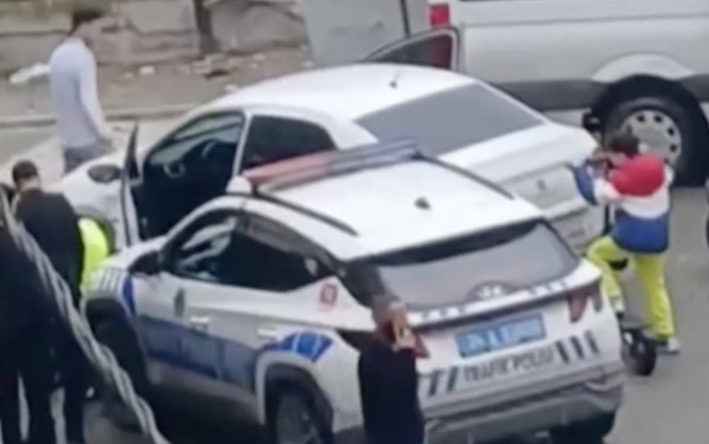Esenyurt'ta aracının muayenesi olmayan bir sürücü, polislerin "dur" ihtarına uymayarak kaçtı. Araca tutunan polis metrelerce sürüklenirken, sürücü bir servis minibüsüne vurarak durabildi. 3 aracın maddi hasar aldığı olayda ise sürücü, polis ekiplerince gözaltına alındı.
