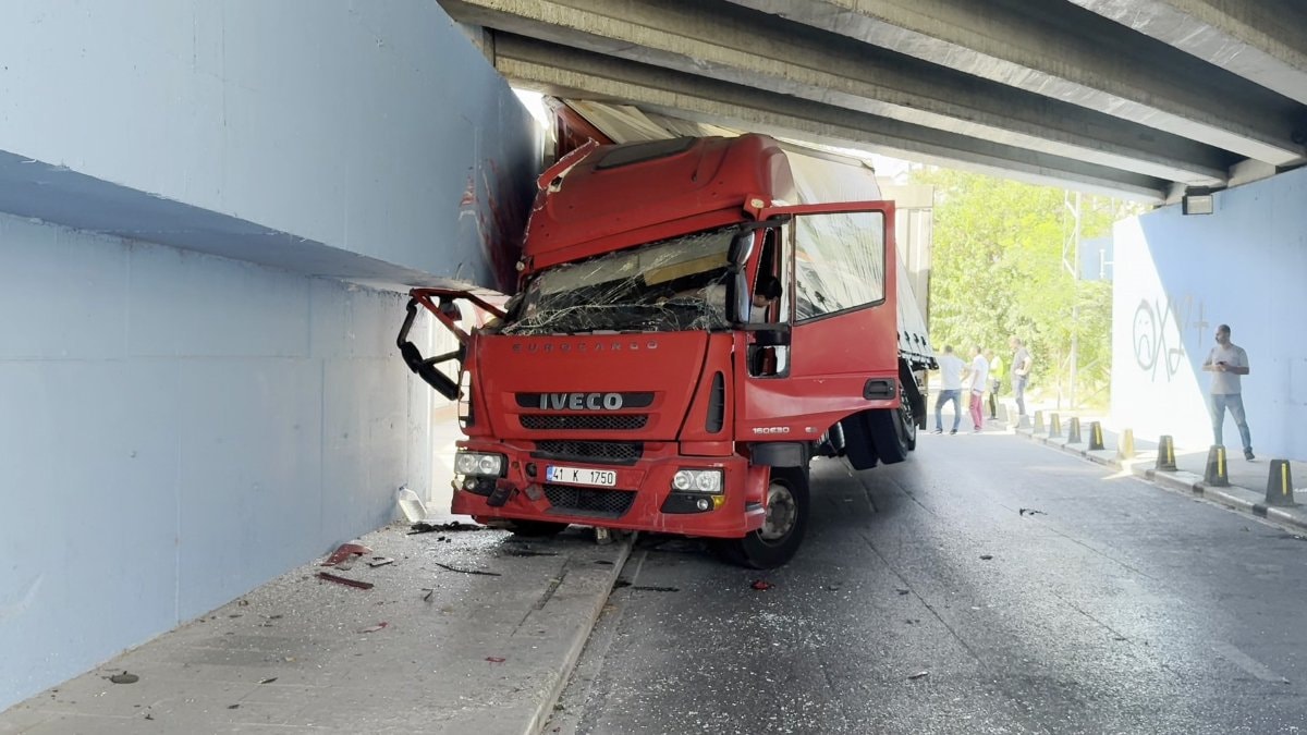 Yenimahalle Mahallesi Hatboyu Caddesi'nde Alaattin B. (40) hakimiyetindeki 41 K 1750 plakalı kamyon alt geçidin duvarına çarptı.