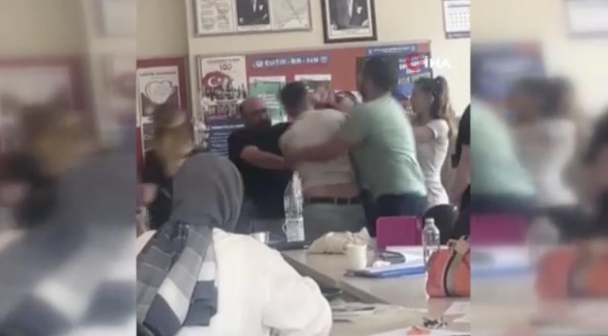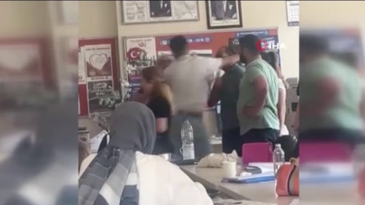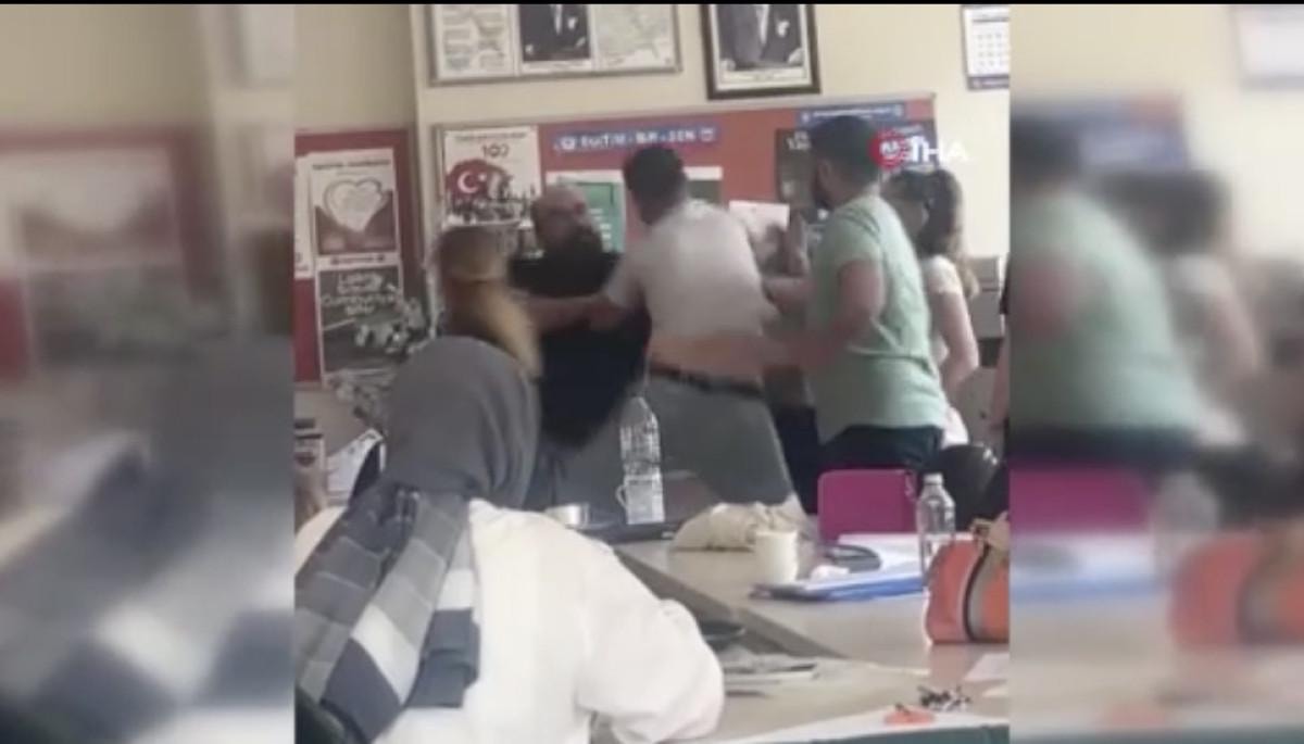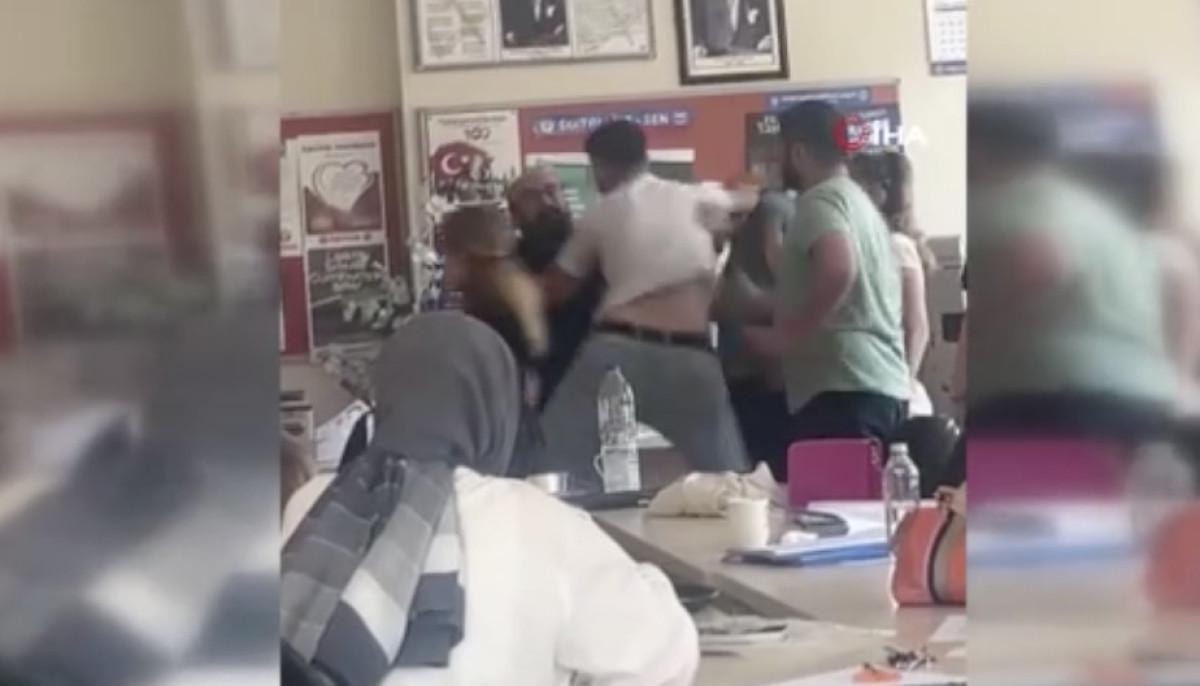 ‘Sen benim babamın arkasından konuşamazsın’ diyen Durmaz, öğretmenlerden birine yumruk attı. O anlar cep telefonu kamerasına yansıdı.