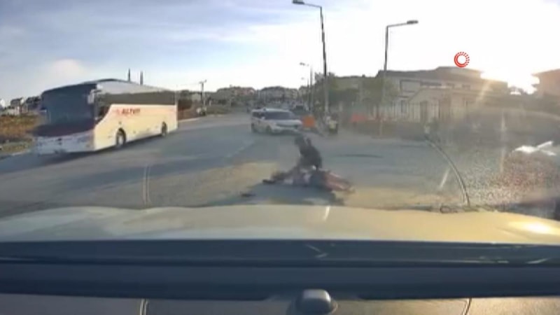Şüpheli, şahsı yumruklamaya devam ederken, olay yerine gelen bir kadın tarafından durdurularak uzaklaştırıldı.