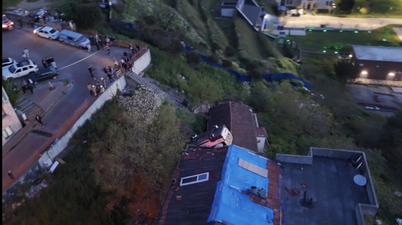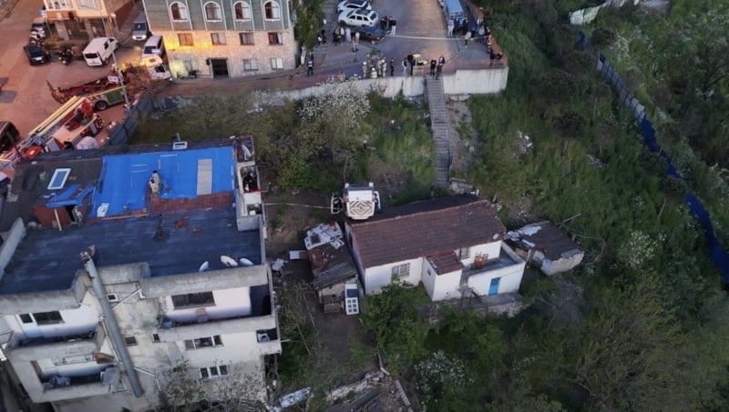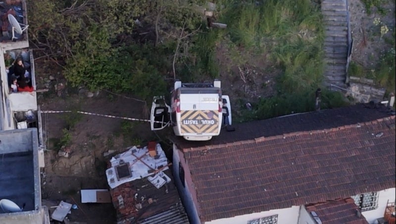 Kazayla ilgili inceleme yapan polis ekiplerinin, yokuşta herhangi bir fren izine rastlamadığı bilgisine ulaşıldı. Evin çatısına düşen servis ise havadan görüntülendi.