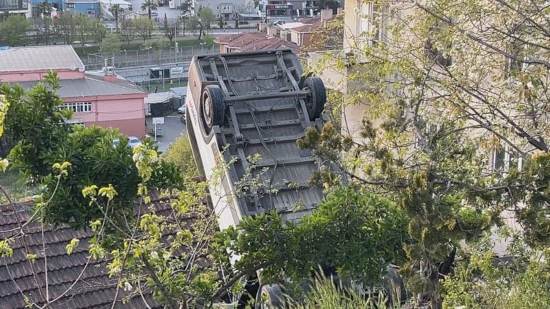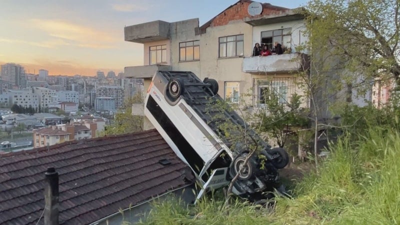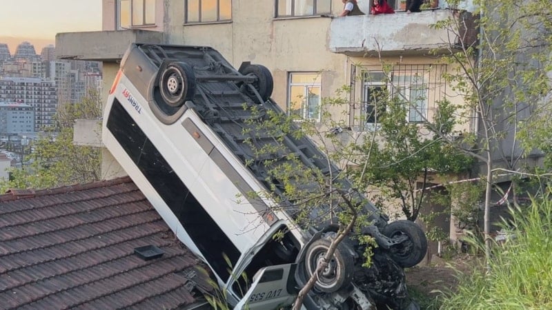 Okul servisinin çatısına düştüğü evde yaşayan İsmail Koç, "Minibüs duvara vurup, duvardan çatıya düşüyor. İçinde şoför yaralıydı inşallah bir şeyi yoktur. Çok geçmiş olsun. Biz başkaları da var diye tedirgin olduk ama çok şükür sadece şoför varmış.