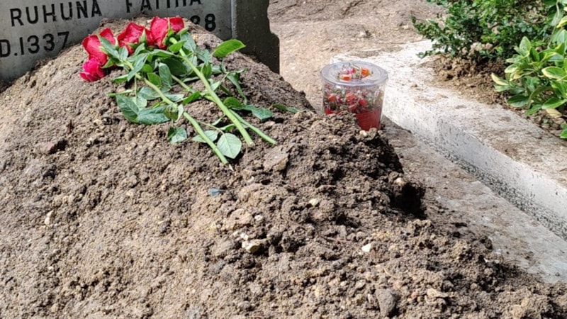 Mezarını ziyaret eden arkadaşları, mezara kırmızı güller ve şeker bıraktı.