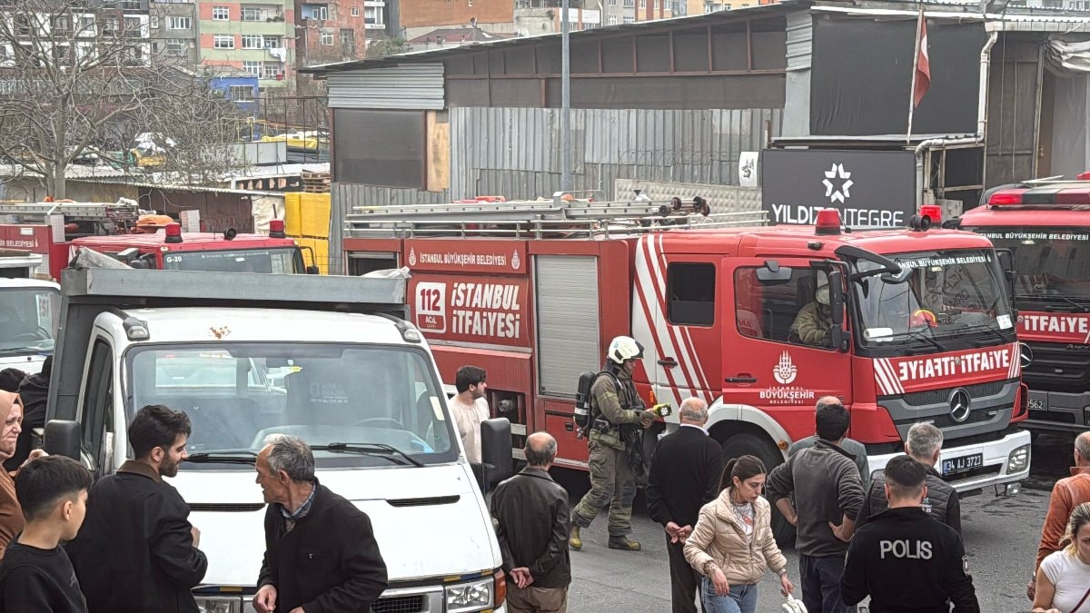 İstanbul Kağıthane'de sokakta orman ürünleri deposu olarak kullanılan iş yerinde, henüz bilinmeyen bir nedenle yangın çıktı.
