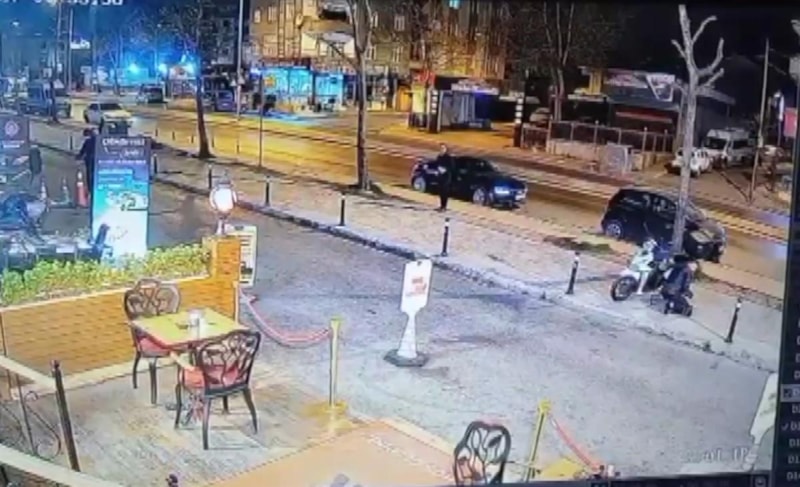 Görüntülerde, bir otomobilden ateş açılmasının ardından çevredekilerin korku içinde kaçtığı anlar görülüyor.