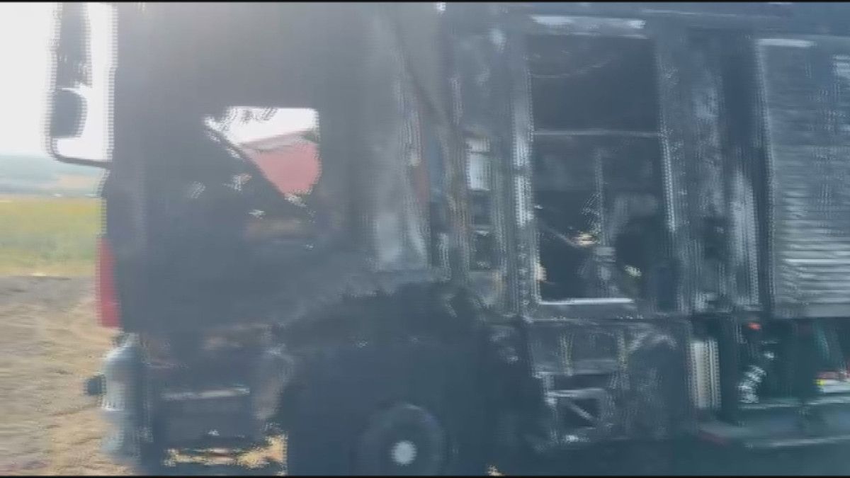 İtfaiye aracı tamamen yanarken, aracı kullanan itfaiye eri yaralandı.