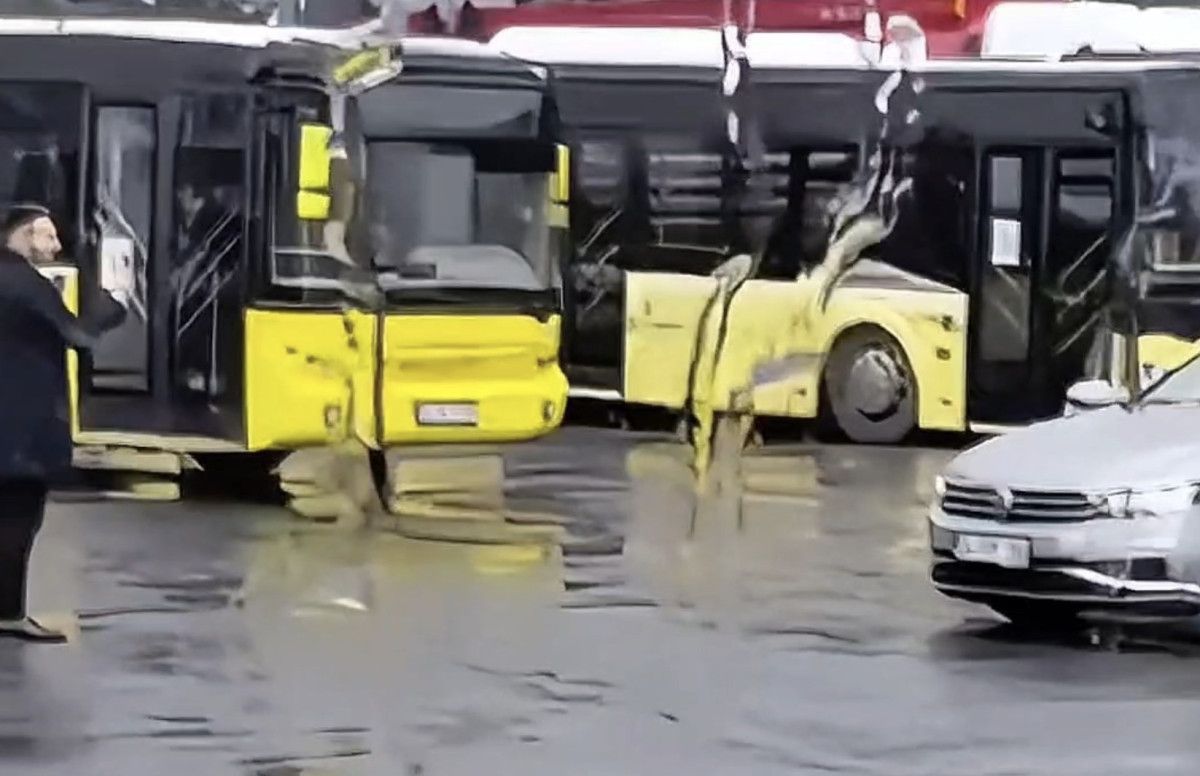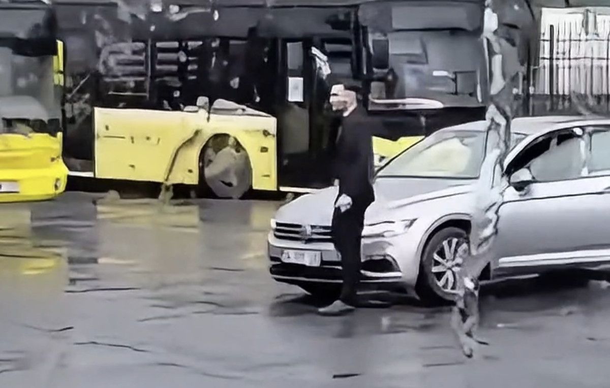 Peronda bulunan bir otobüs şoförü, o anları cep telefonu kamerasıyla kaydedip "Adamlar gündüz vakti silah sıktı, gidiyor" diyerek duruma tepki gösterdi.