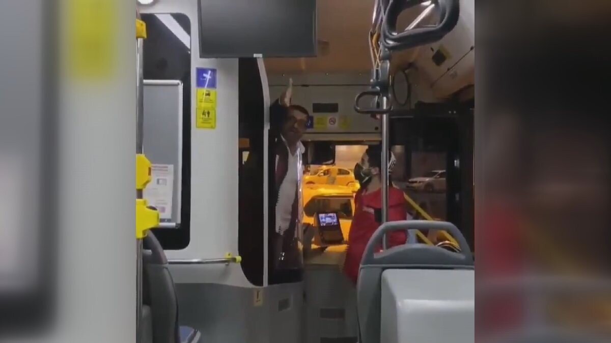 Otobüse binen kadın ile beraberindeki erkek, otobüs şoförüyle tartışmaya başladı.