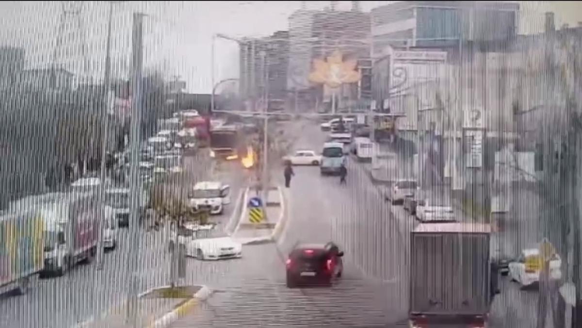 Ardından karşı şeritten gelen İETT otobüsüne çarpan motosiklet bir anda alev aldı.