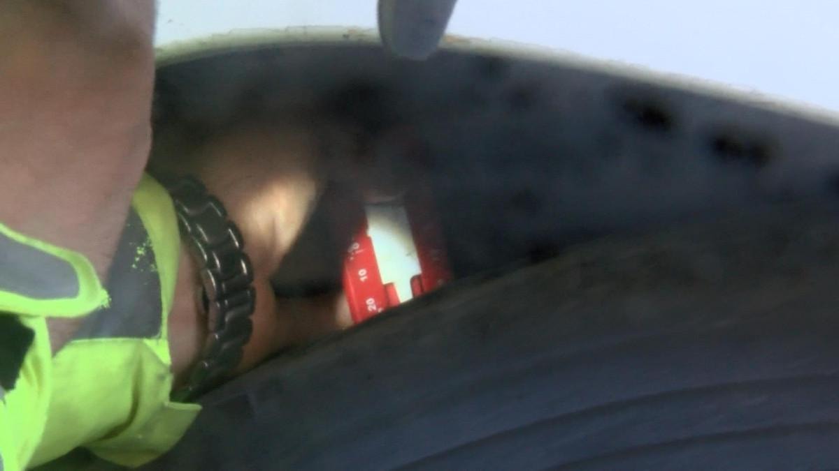 Polis ekipleri, otobüslerin lastiklerinin mevsim şartlarına uygunluğunu kontrol ettiği esnada bir otobüsün lastiklerinin yasal sınırın altında bulunduğunu fark etti.