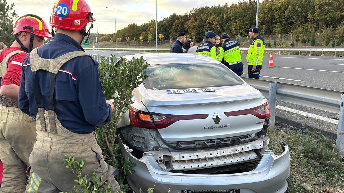 Otomobil ise bariyerlere çarparak otoyol kenarındaki yeşilliklere sürüklendi.