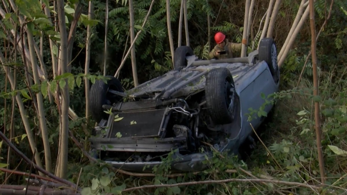 Sürücü Volkan K., kaza nedeniyle ters dönen otomobilin içinde sıkıştı.