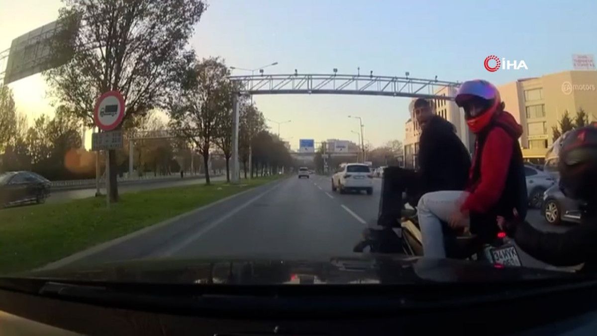 Öfkeli motosikletliler, otomobil sürücüsünün aşağı inmemesi üzerine bir süre daha hakaretlerine devam ederek olay yerinden ayrıldı.