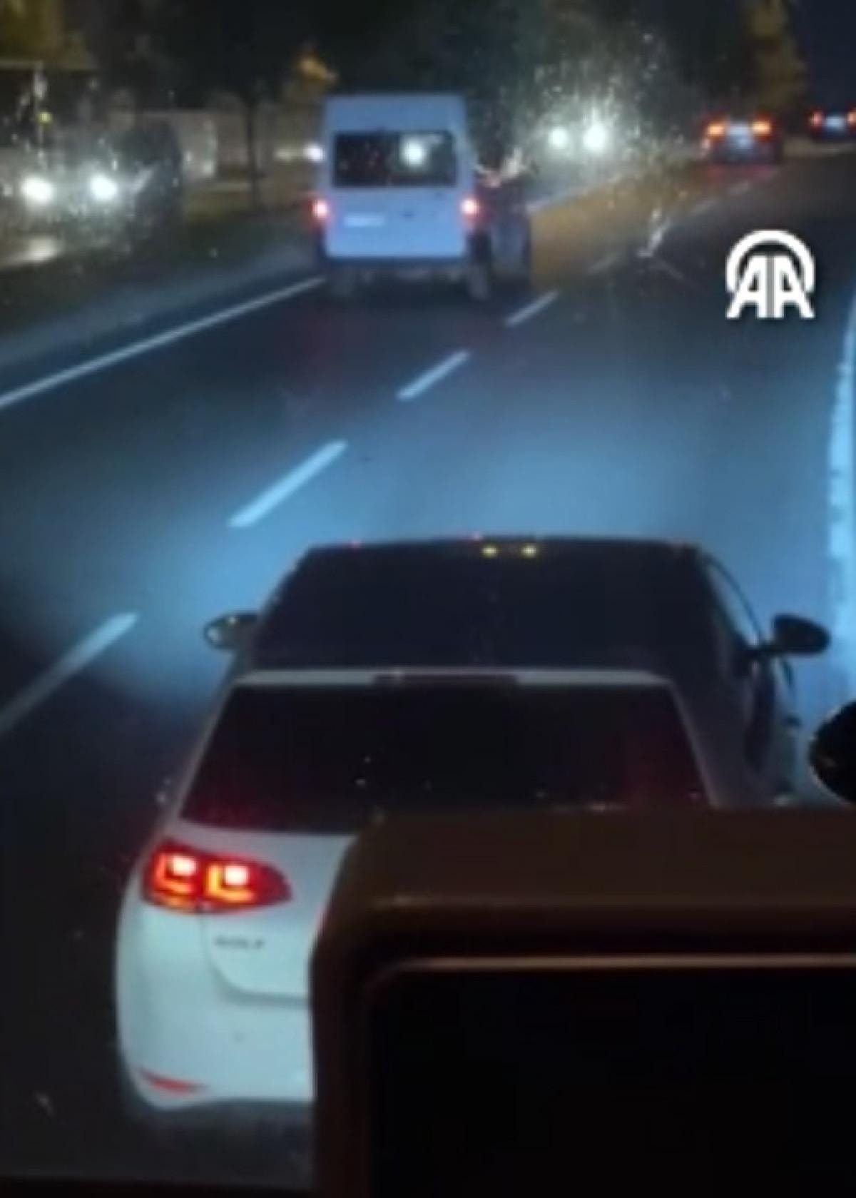 Otomobilin sürücüsü dörtlülerini yakarak, otobüsün önünde düşük hızla ilerlemeye başladı.Bir süre sonra otobüsün şoförü yol kenarında aracını durdurdu.