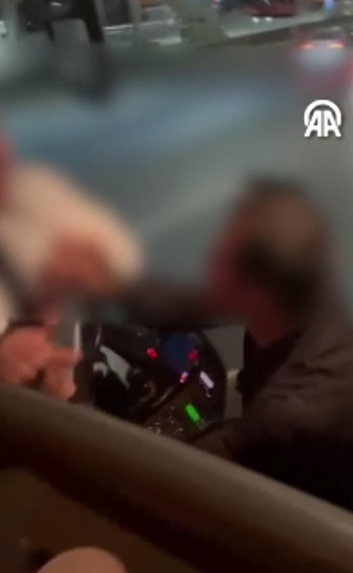Otobüsün dışına da taşınan kavga, çevredekilerin araya girmesiyle sona erdi.Olay, otobüste bulunan yolcuların cep telefonu kamerasıyla kaydedildi.