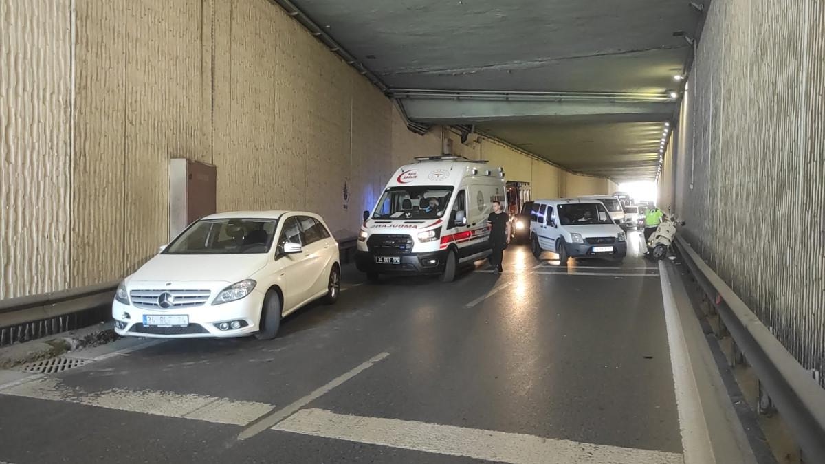 Tünel içerisinde arıza yapan araca çarpmamak için manevra yapan otomobile, arkadan gelen motosiklet çarptı.