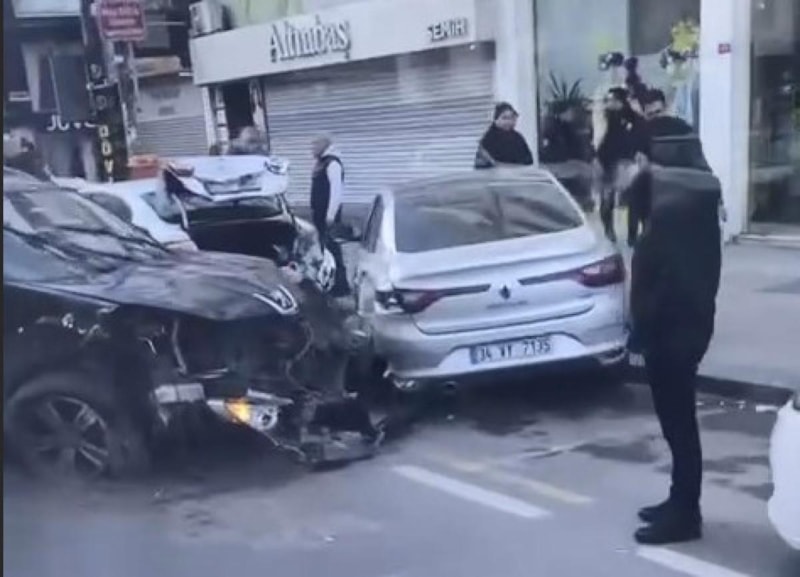Çarpmanın etkisiyle savrulan otomobil, diğer araçların da birbirine vurmasına neden oldu.