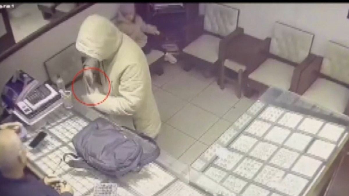 İstanbul'un Gaziosmanpaşa ilçesi Hürriyet Mahallesi'nde yüzünde maske olan kapüşonlu bir kişi kuyumcu dükkanına girip elindeki çantayı altın tezgahının üstüne bıraktı.