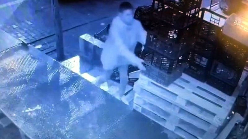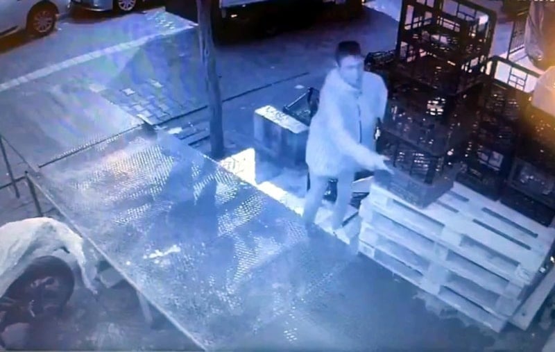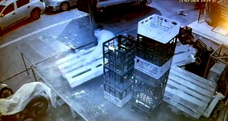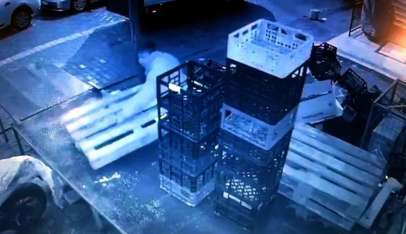 Paletleri kamyonete yükleyerek uzaklaşan şüpheli, güvenlik kamerası görüntülerine yansıdı.