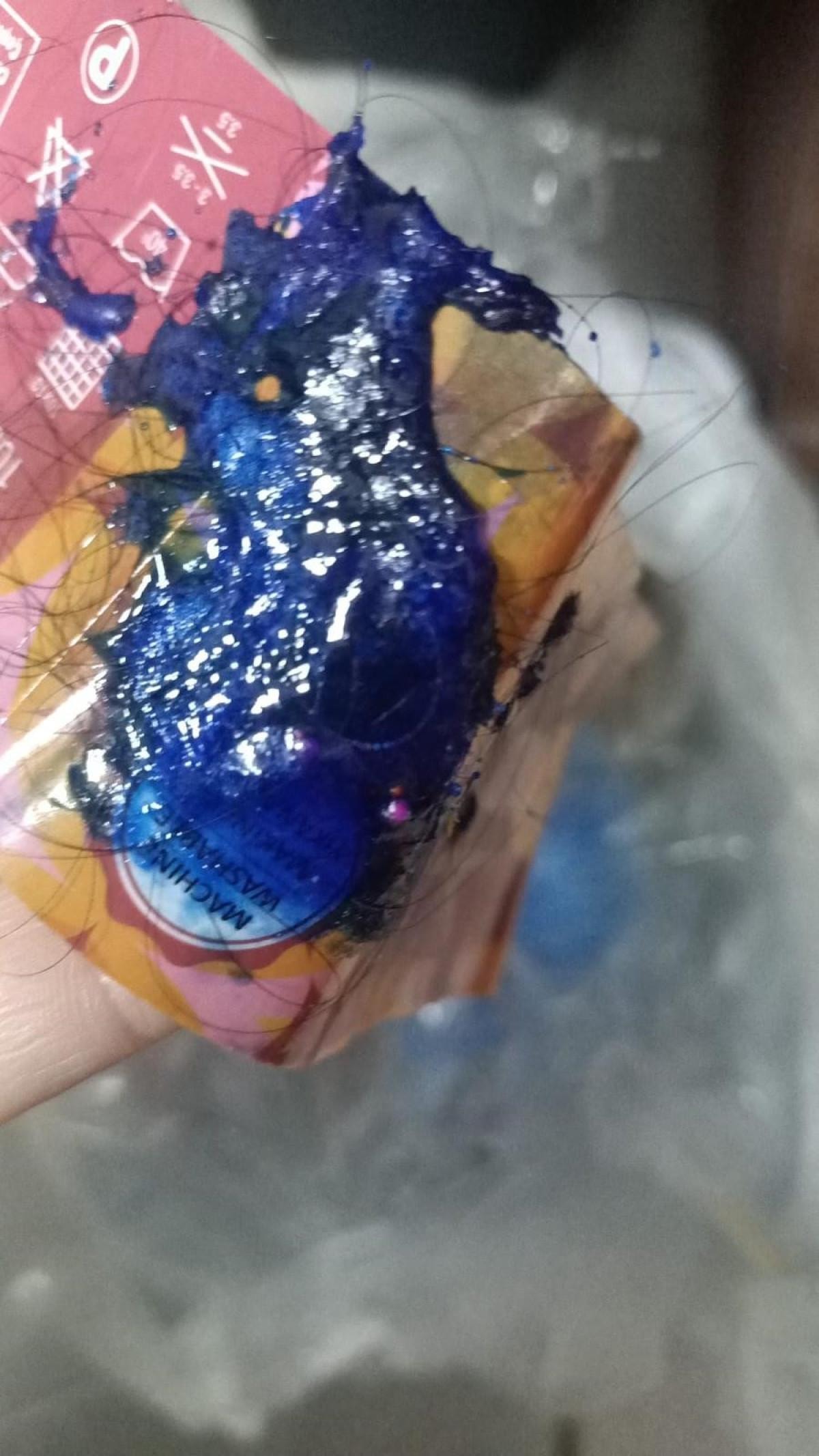 Anne Ulufer, pamuk şekere su döktüğünde ortaya çıkan yoğun ve masmavi boyayı görünce durumu cep telefonuyla görüntüledi.