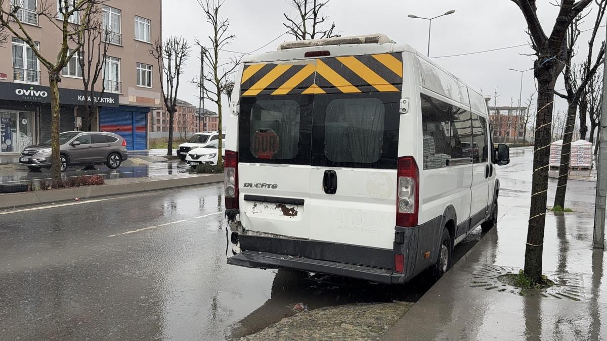 Kontrolden çıkan otomobil, önce orta refüje çarpma tehlikesi geçirdikten sonra yol kenarında park halinde bulunan bir servis minibüsüne çarptı.