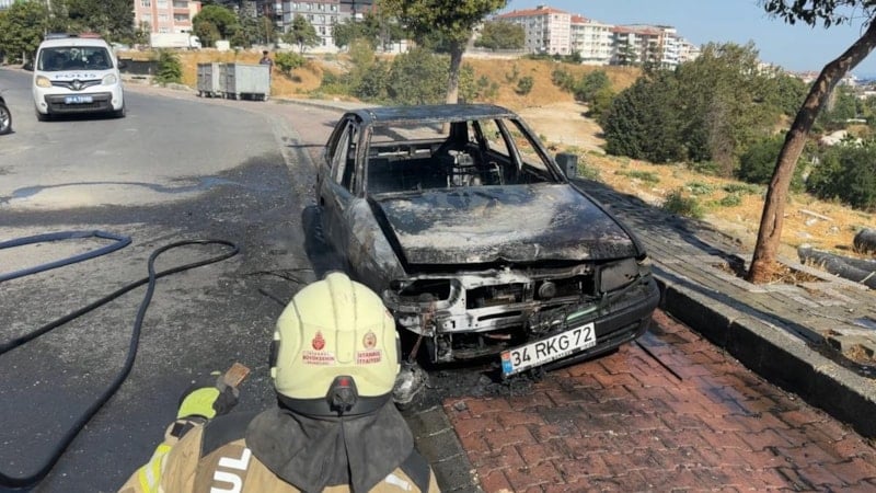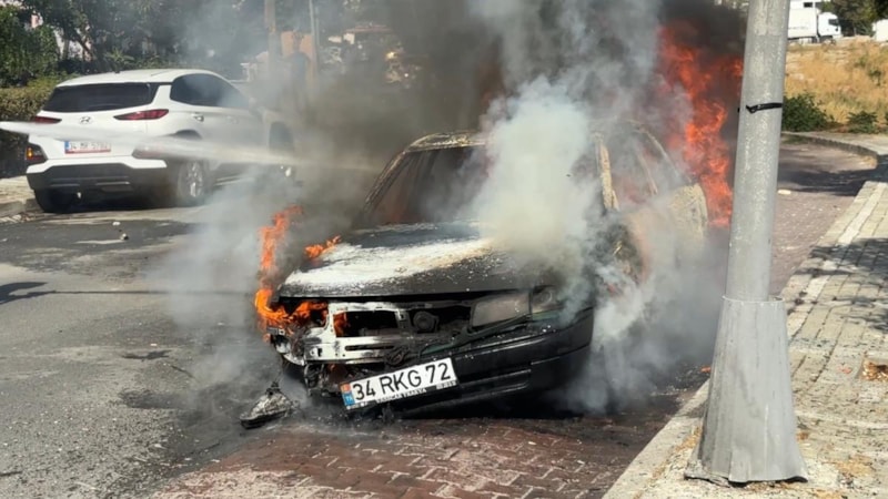 Avcılar'da park halindeki otomobilde çıkan yangın itfaiye ekiplerince söndürüldü. Demir yığınına dönen otomobilin alev alev yandığı anlar kameralara yansıdı.