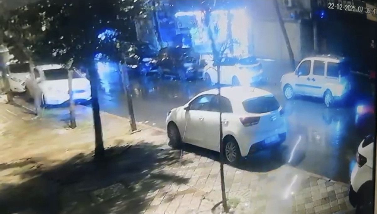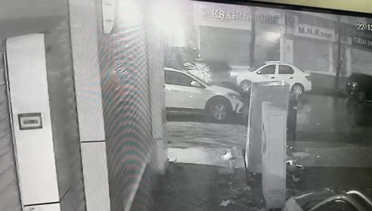 Görüntülerde, araçla sokağa gelen şüphelilerin silahla park halindeki otomobile ateş açıp, daha sonra kaçtıkları anlar görülüyor.
