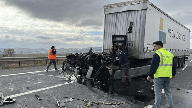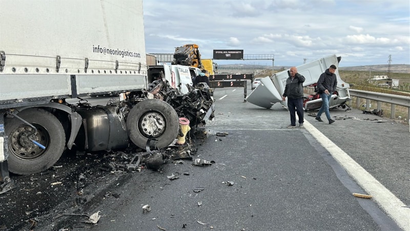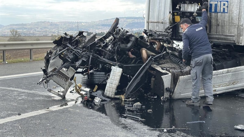 Kuzey Marmara Otoyolu'nun Çatalca mevkiinde arıza yapan tıra başka bir tır çarptı. Çarpışmanın etkisi ile tırın çekici kısmı yerinden koparak otoyola savruldu.