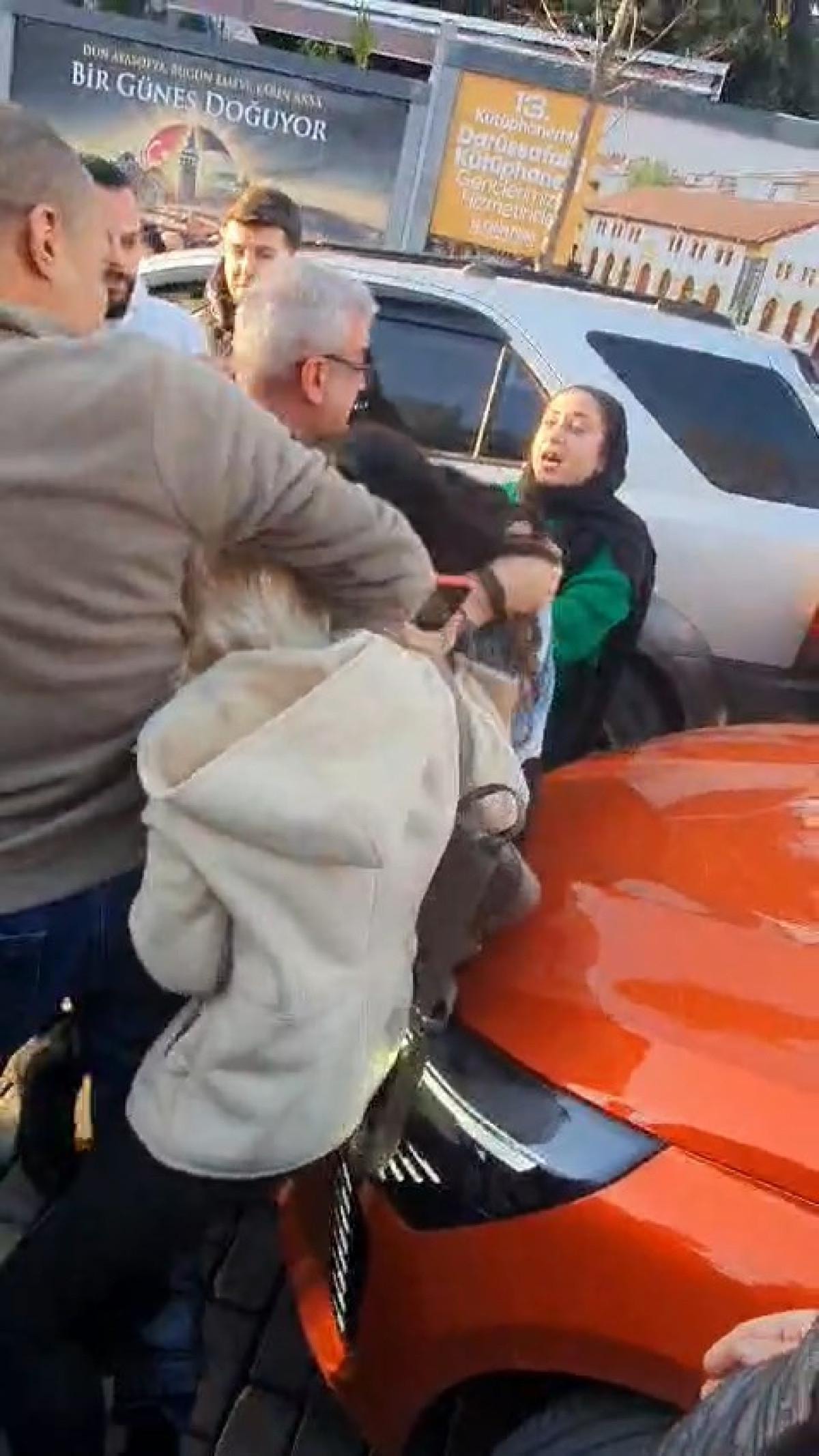 Araçlardan inen kadınların tartışması bir süre sona kavgaya dönüştü.