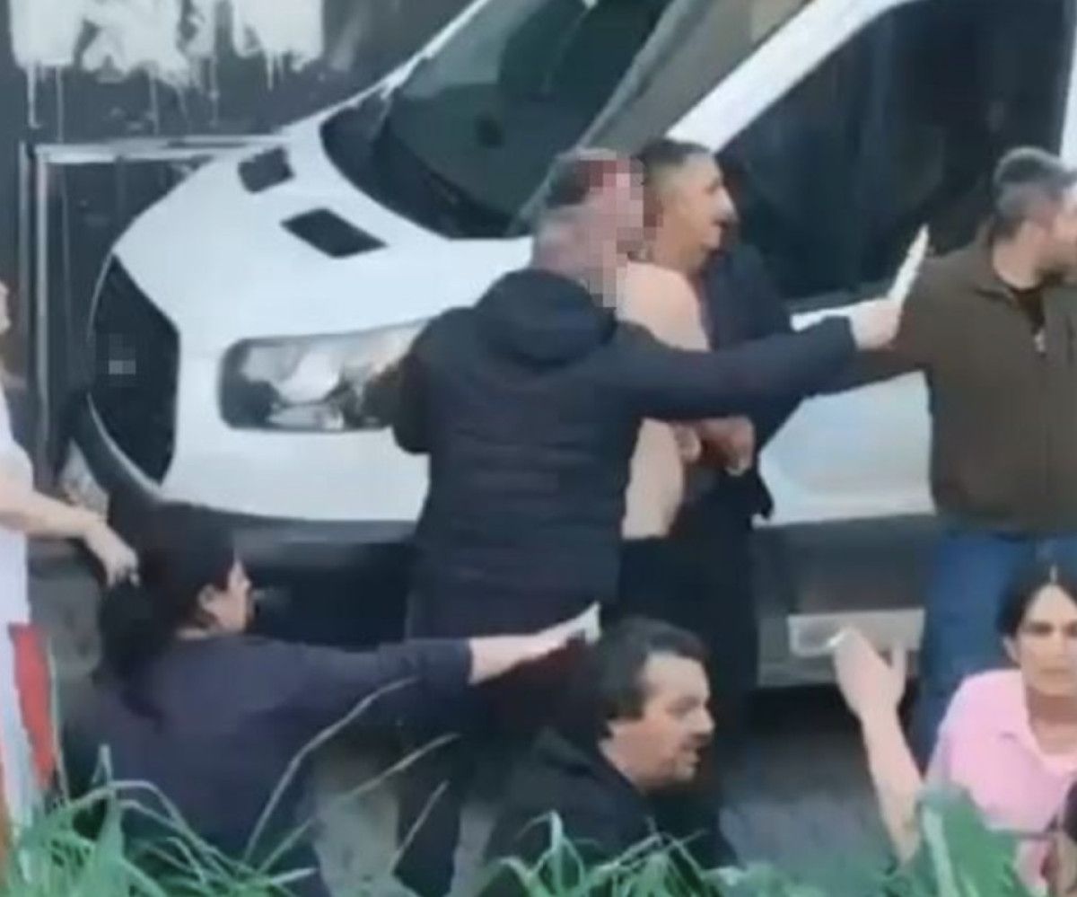 Polisin gelmesiyle kavga son bulurken, yaşanan o anlar kameraya yansıdı.