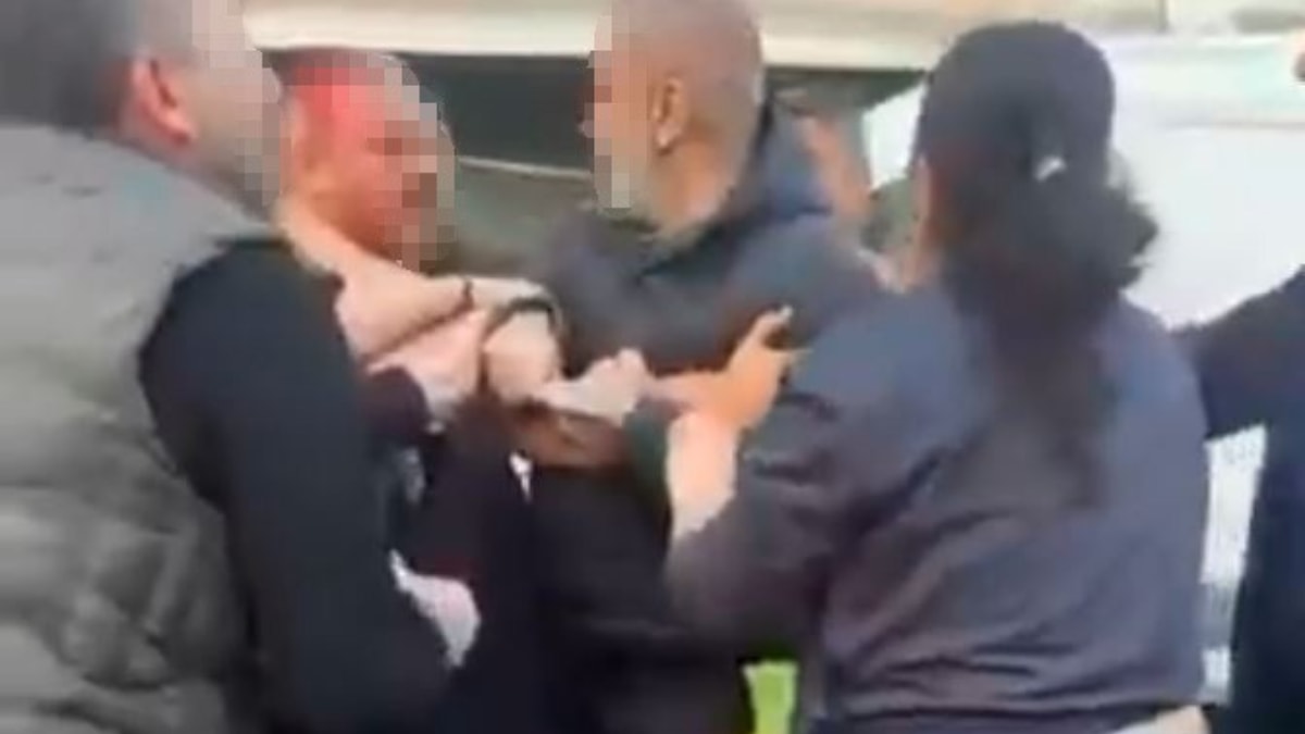Kısa sürede sinirler gerilirken, taraflar birbirlerine tekme tokat saldırdı.