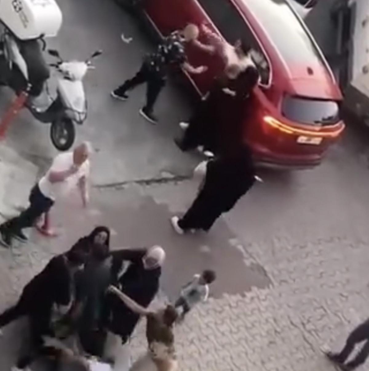 Ailelerin kavga ettiği anlarda çocukların da sokakta bulunması ve bir çocuğun ağlamaya başladığı anlar da görüntülerde yer alıyor.