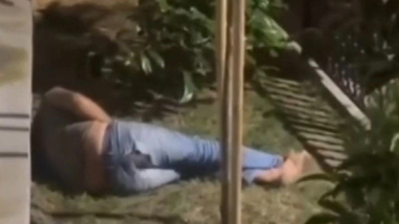 O sırada kadının arkasına geçen bir kişi, yerde çimlere uzanarak mastürbasyon yapmaya başladı.