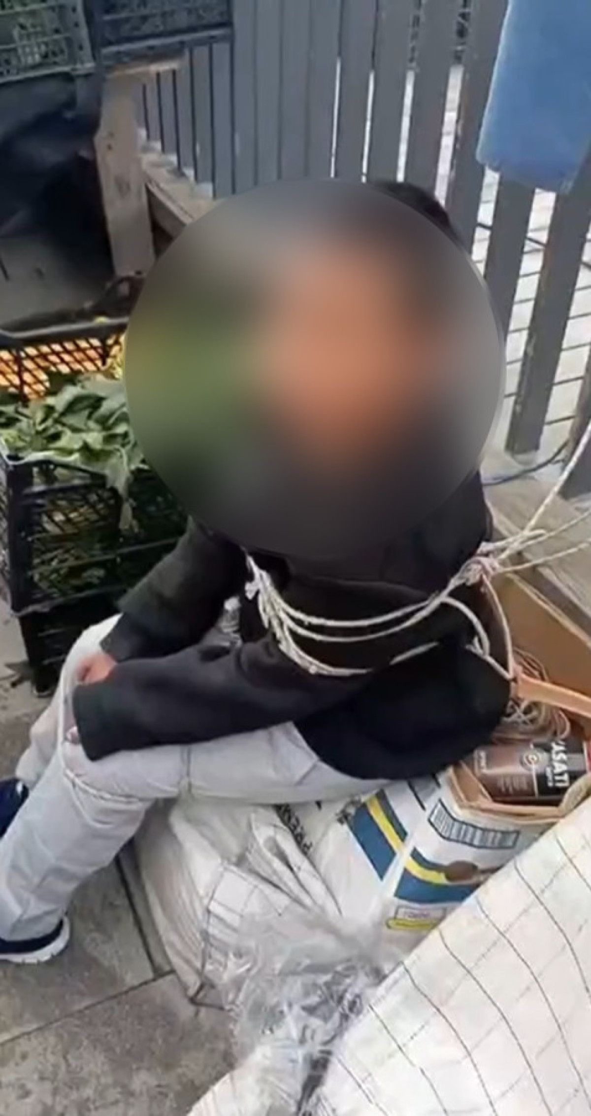 - Sarıyer'de pazar yerinde eşofman çalan bir çocuk, ikinci girişiminde esnaf tarafından iple bağlandı.