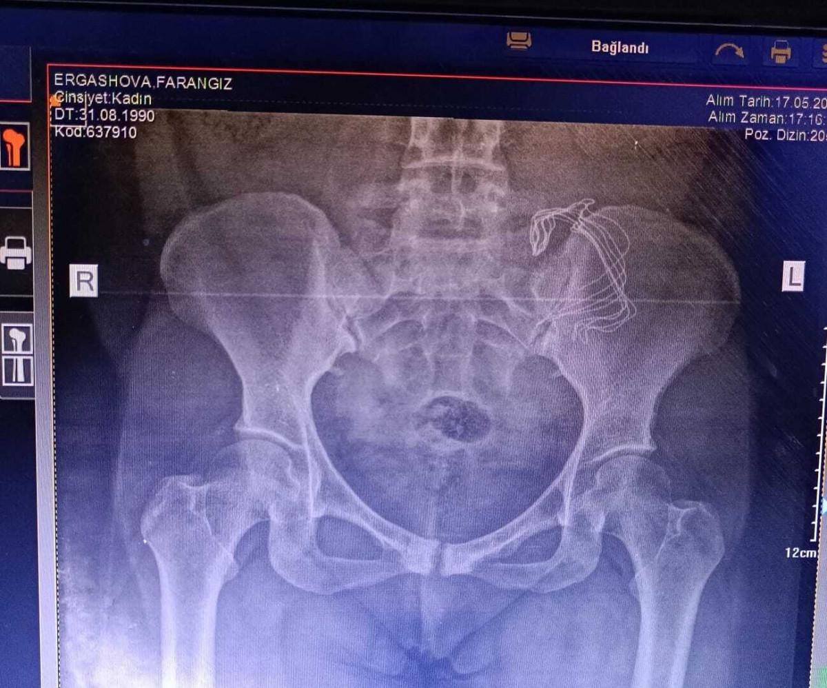 Şikayetlerini doktora anlatan Ergashova'dan tomografi çektirilmesi istendi. Tomografiye bakan doktor, Ergashova'nın karnın sol tarafında yabancı bir cisim olduğunu fark etti.