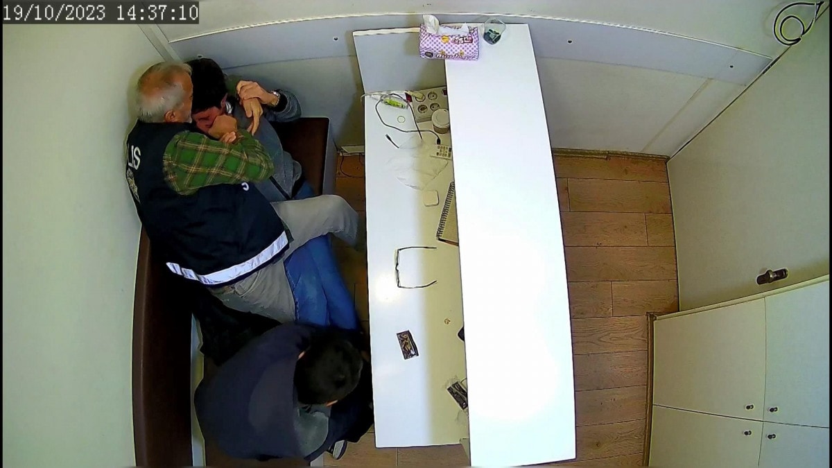 Ardından ofise bir polis yelekli 3 kişi ofise geldi.