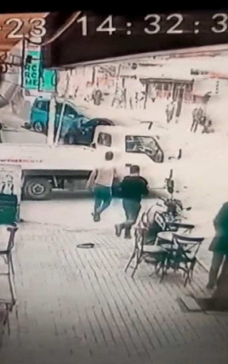 Öte yandan yaşanan kaza anı çevredeki bir iş yerinin güvenlik kamerasına saniye saniye yansıdı.
