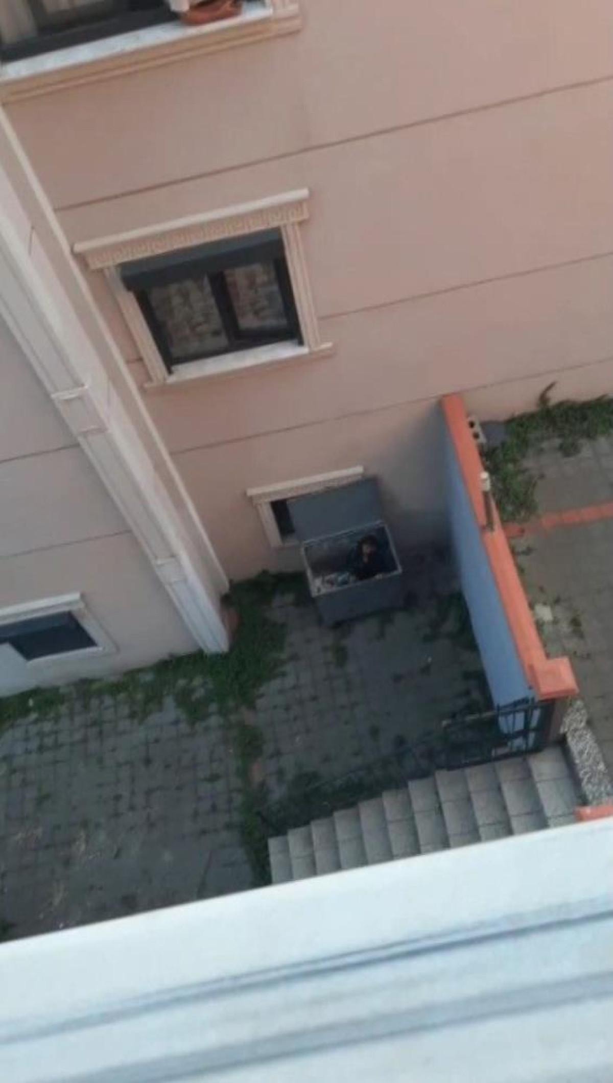 Şahsın çöp konteynerine saklandığı anlar, vatandaşın cep telefonu kamerasına yansıdı.