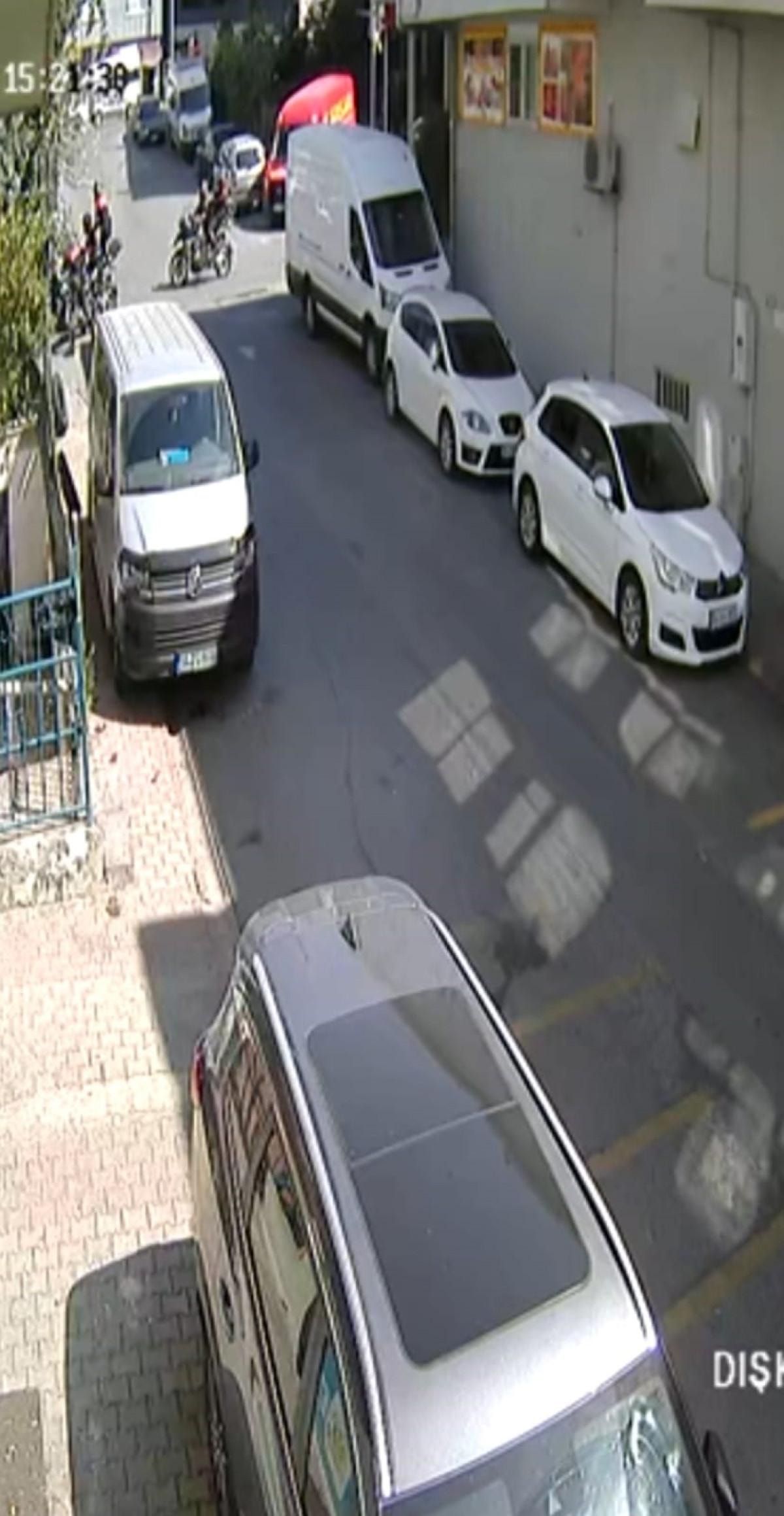 Kaza anı çevredeki bir iş yerinin güvenlik kamerasına yansıdı. Görüntülerde, kaçan şüphelinin kullandığı otomobil hafif ticari araca çarpıyor.