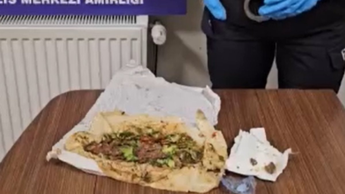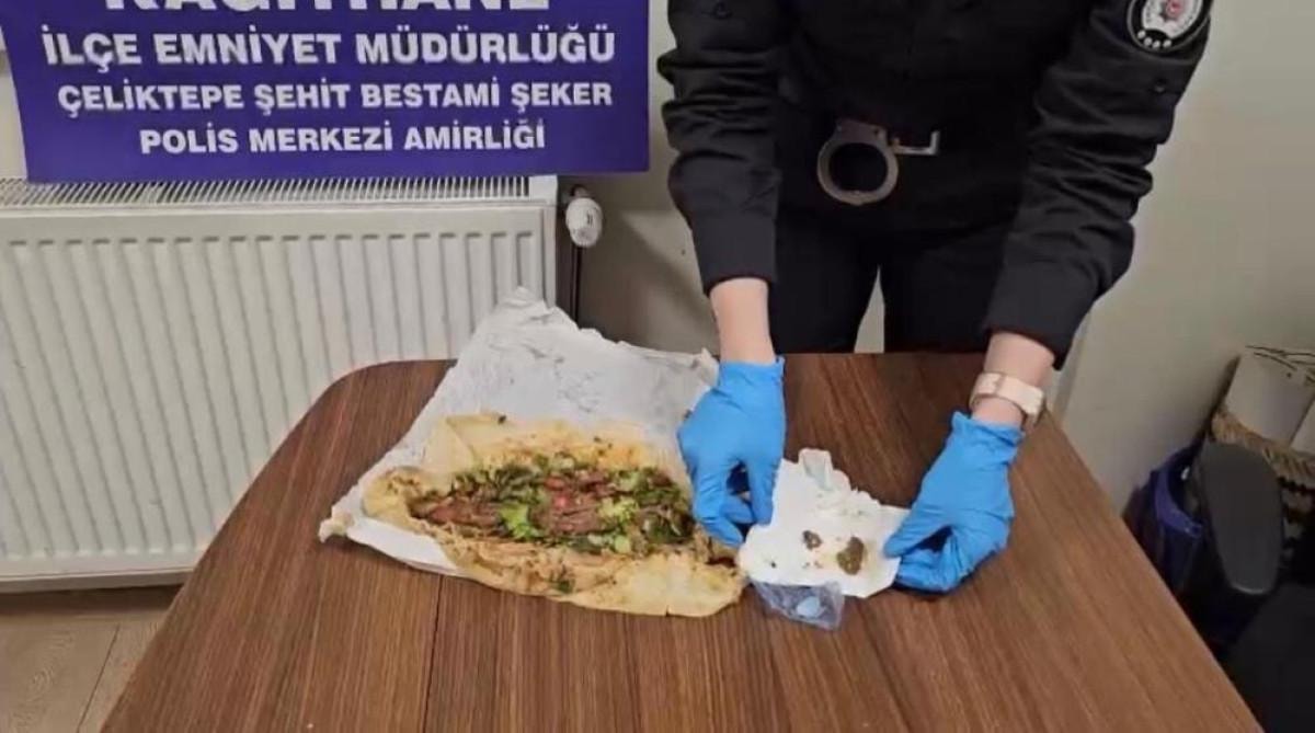Tedbir amaçlı dürümün içerisini kontrol eden polis ekipleri, dürüm içerisinde sıcaklık ve ıslaklıktan dolayı dağılmış bir şekilde uyuşturucu madde bulundu.