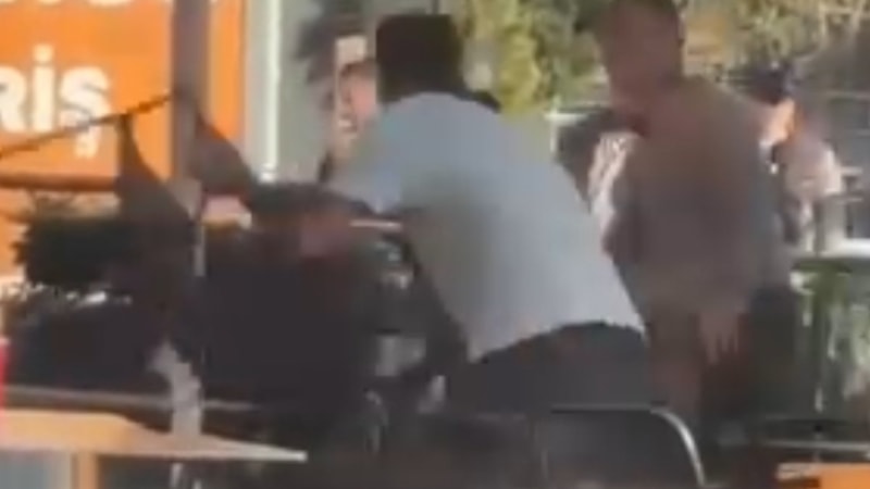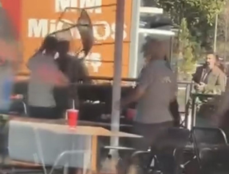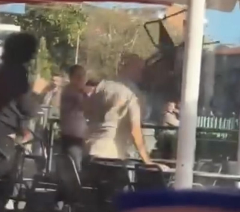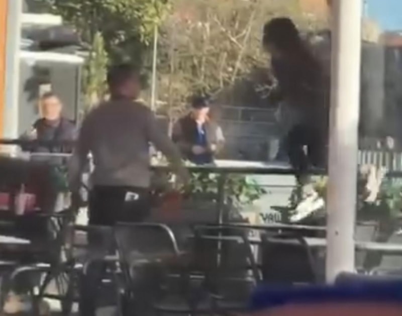 Bu sırada bazı kafe çalışanları kavganın ortasında kaldı.