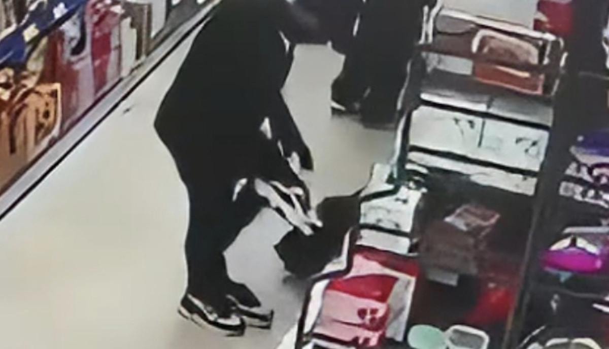 İstanbul Sultangazi'de alışveriş bahanesiyle markete giren şüpheli, bir süre ayakkabı reyonunu inceledi.