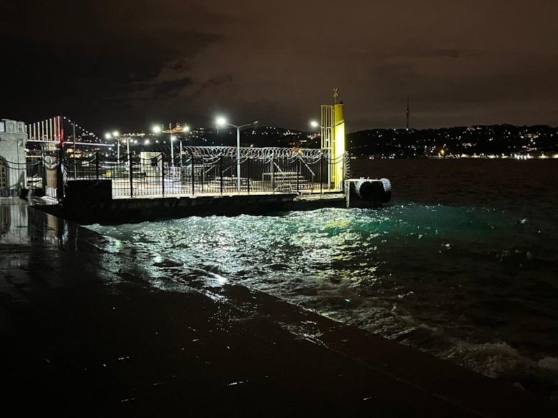 Şiddetli rüzgar sebebiyle kıyıya vuran yüksek dalgalar Beşiktaş sahilinde görüntülendi.