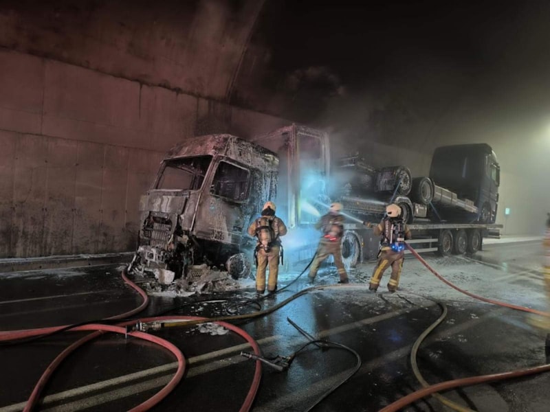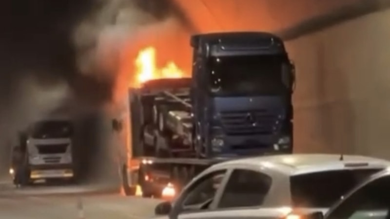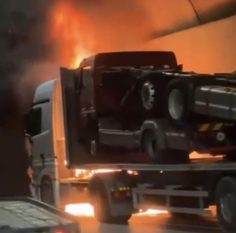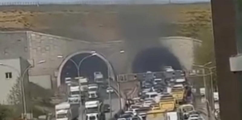 Yangın nedeniyle tünel tamamen trafiğe kapatılırken, yangının söndürülmesinin ardından araç geçişleri normale döndü.