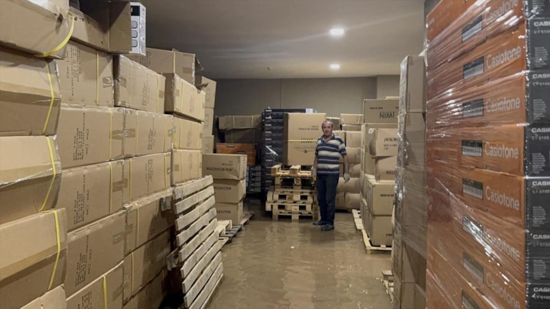 Ekipler su tahliye çalışması yaparken, depodaki birçok eşya kullanılamaz hale geldi.