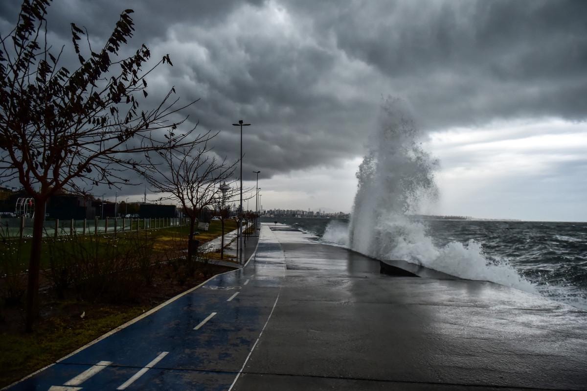 Öte yandan İstanbul’da fırtına devam ederken, sahil şeridinde ise boyları 5 metreyi aşan dev dalgalar oluştu.