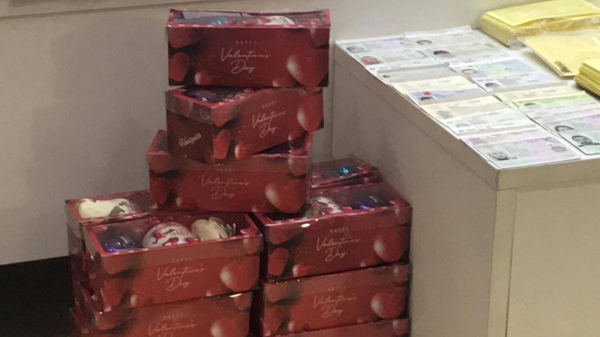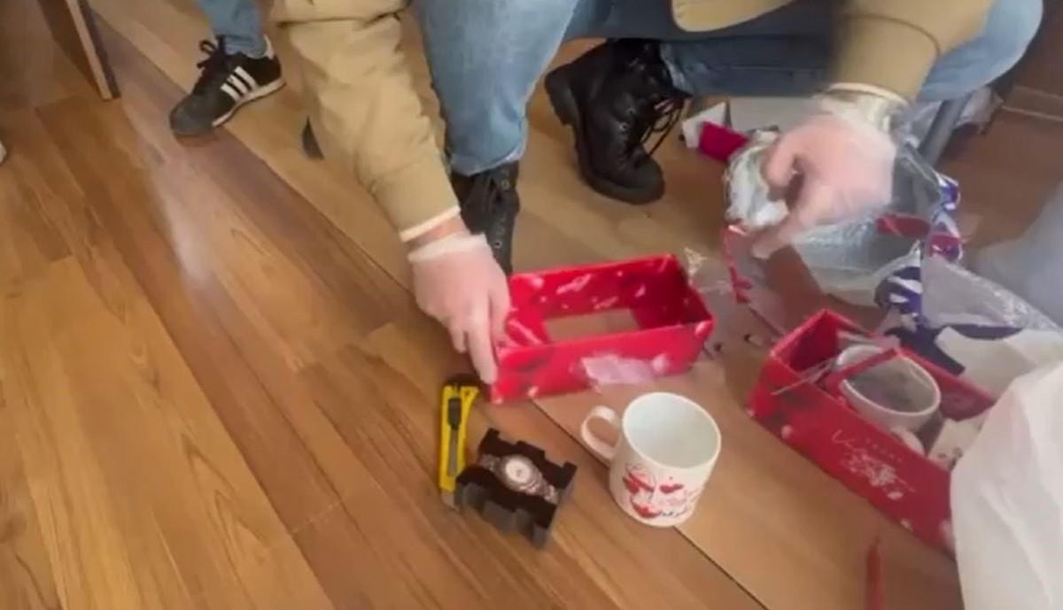 Operasyonda çok sayıda kargo gönderimi için bekletilen hediyelik eşya kutusunda zulalanmış halde sahte kimlik kartı, vize etiketi, sürücü belgesi, pasaport ele geçirildi.
