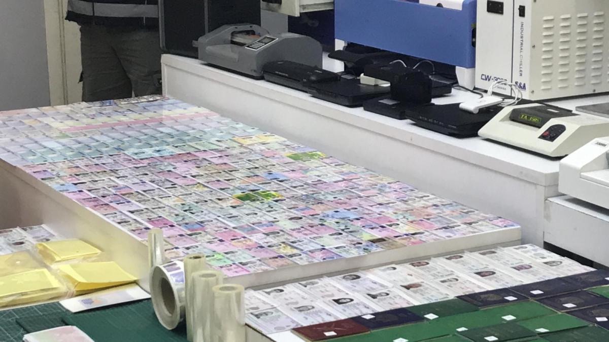 Belirlenen adreslerde, bin 150 adet pasaport, kimlik kartı, vize etiketi, sürücü belgesi, lazer kazıma ve markalama makinaları, laminasyon makineleri, kart basım makinaları, mor ışık cihazları, yazıcılar, bilgisayarlar, nfc cihazları, kart okuma cihazları, tarayıcılar, pasaport ve kimlik yapımında kullanılan çok sayıda materyal ele geçirildi