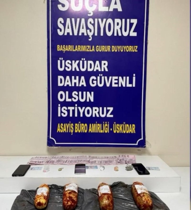 Bunun üzerine şüphelilerin adresine giden Üsküdar Asayiş Büro Amirliği ekipleri, salça bidonlarının içerisine gizlenmiş 4 parça halinde, 1 kilogram 205 gram uyuşturucu madde, satışa hazır halde parçalara ayrılmış 7,3 gram uyuşturucu madde ve 14 adet uyuşturucu hap ele geçirdi.