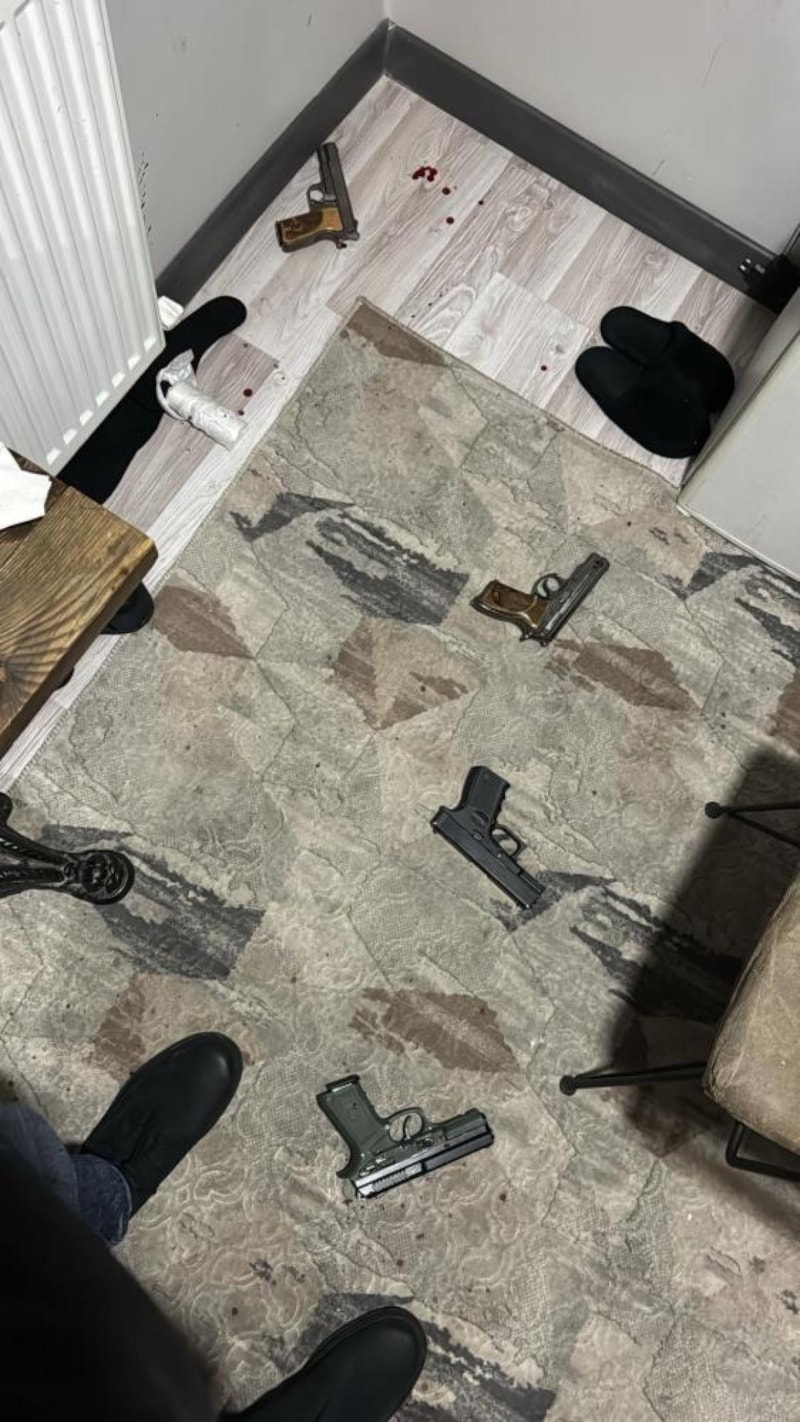 Şahsın daire içerisinde vurulduğunu belirleyen polis, yaptığı aramalarda yerde 4 adet ruhsatsız tabanca ele geçirdi.